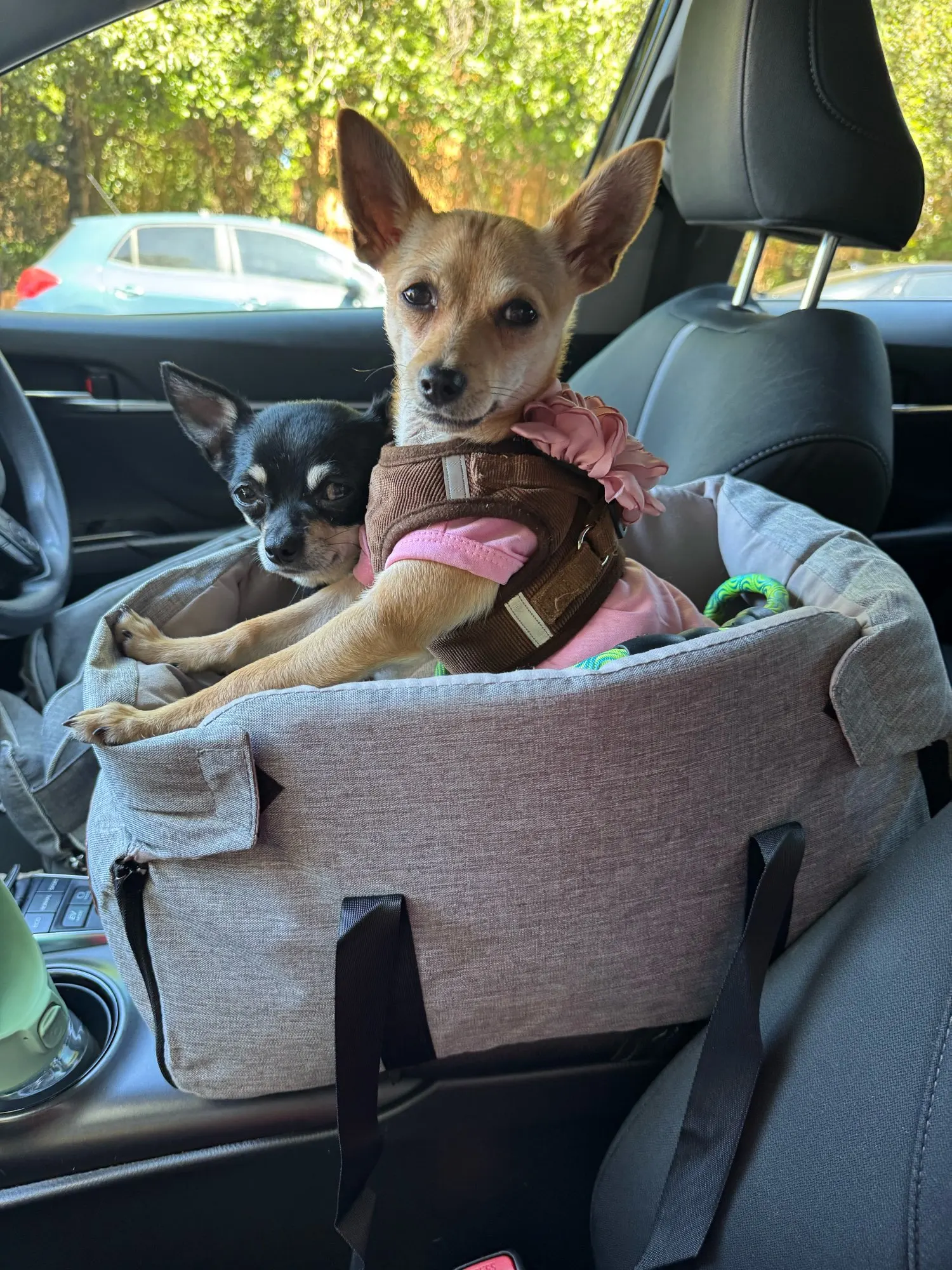 The portable car seat is lightweight yet cozy, ideal for short drives or long road trips, ensuring your pet travels safely and happily.